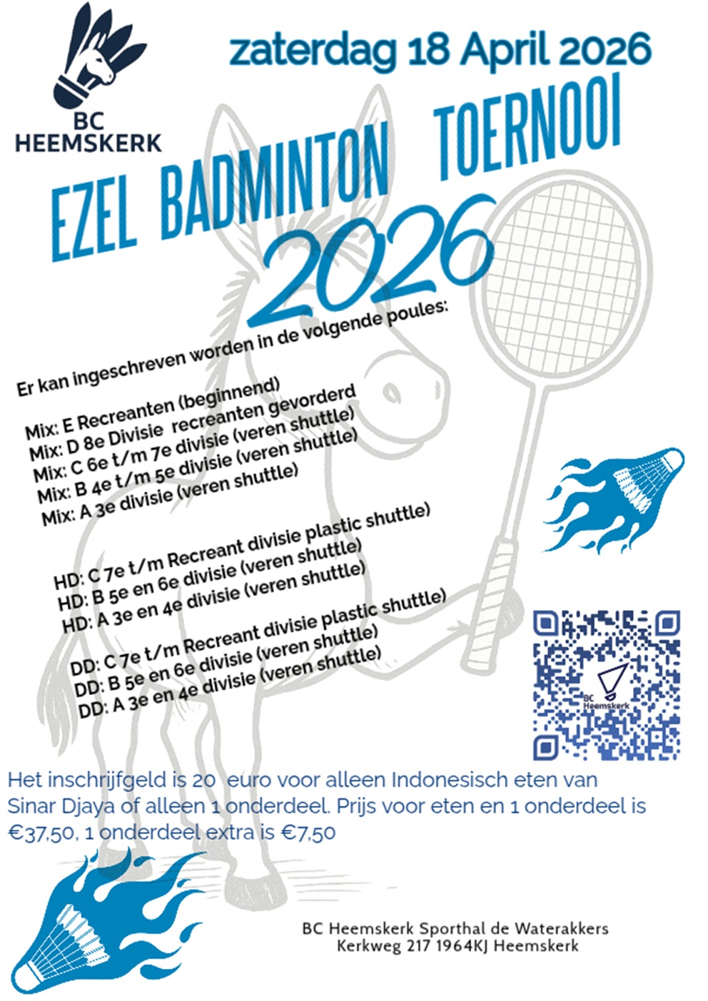 We hebben het ook gemaild en natuurlijk staat het op onze jaarplanner op de website van BC Heemskerk: