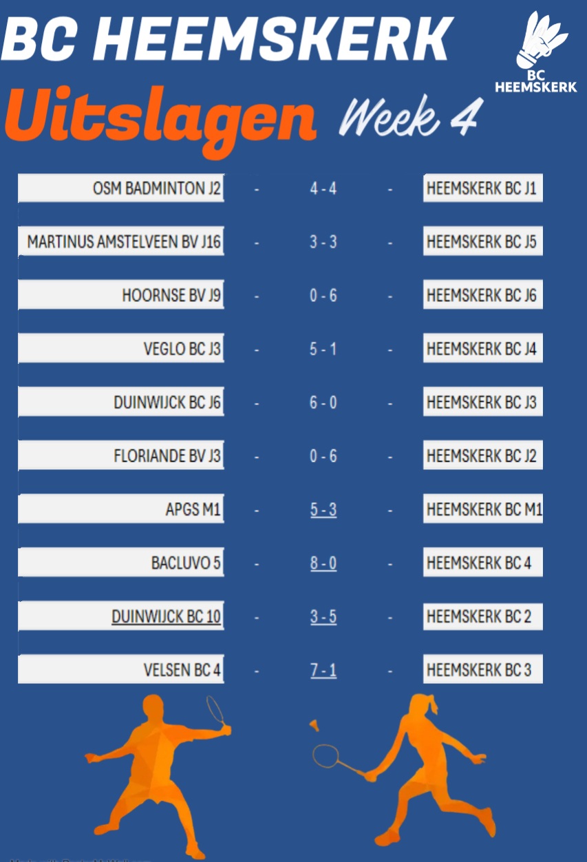 Tegenstanders: Van Zijderveld badminton Amstelveen, SV Sparta, BC Olympia Haarlem, De Spotvogels, BV Martinus Amstelveen, Vennewater Badminton Heiloo en BVNV Badminton Vereniging Nieuw-Vennep.