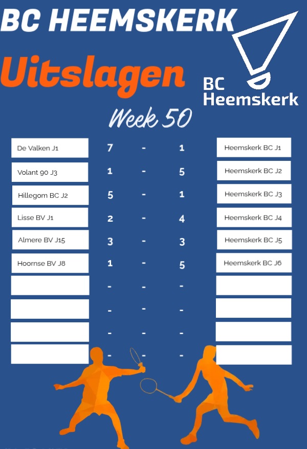 We hebben het ook gemaild en natuurlijk staat het op onze jaarplanner op de website van BC Heemskerk: