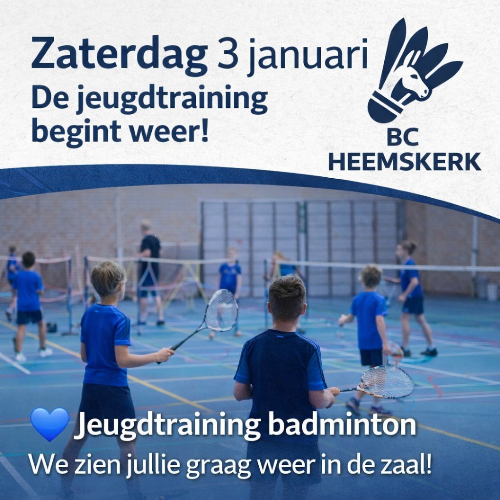 Aankomende zaterdag mag de jeugd van BC Heemskerk weer starten met de eerste training van 2026