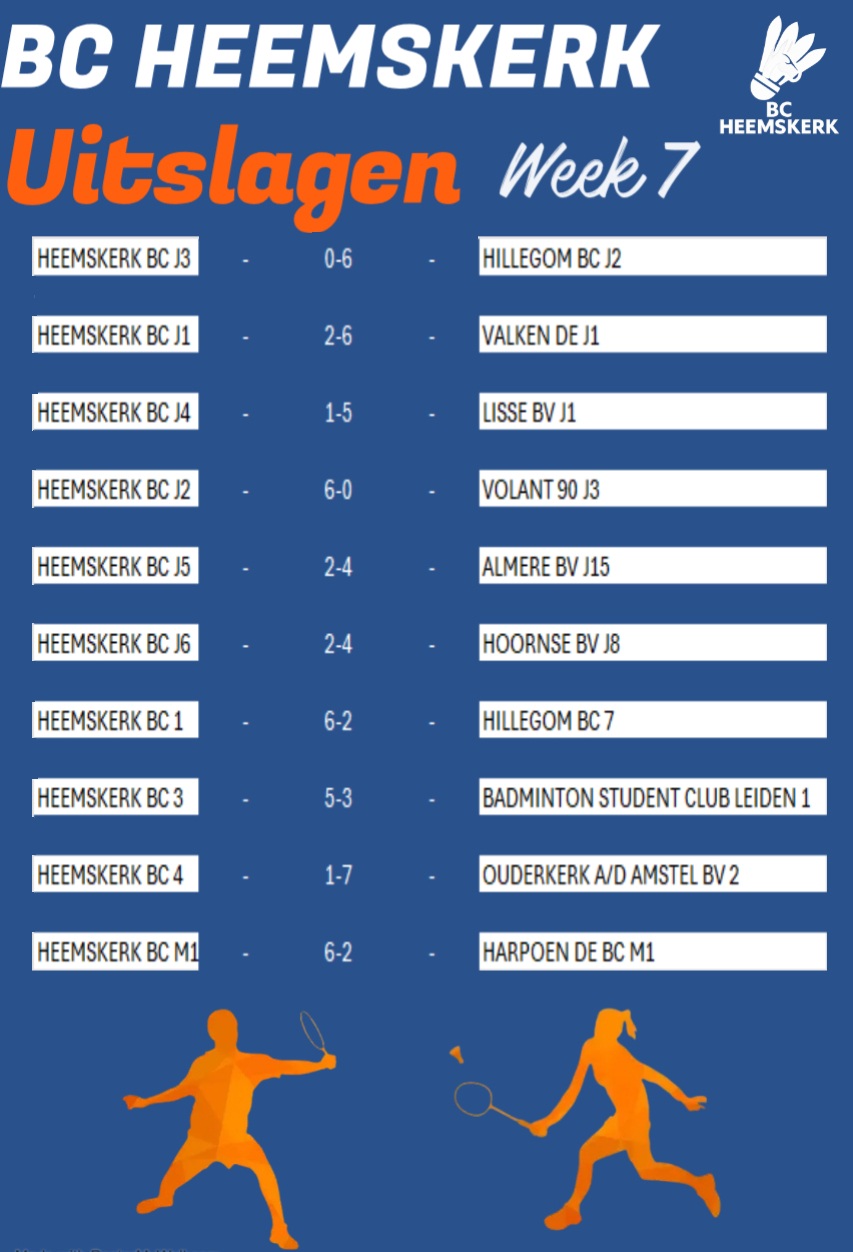 Op bezoek waaren BC Hillegom, BC de Valken Valkenburg, Badmintonvereniging Lisse, Volant '90, Badminton Vereniging Almere, Hoornse Badminton Vereniging Badminton Student Club Leiden, Badmintonvereniging Ouderkerk - BVO en De Harpoen